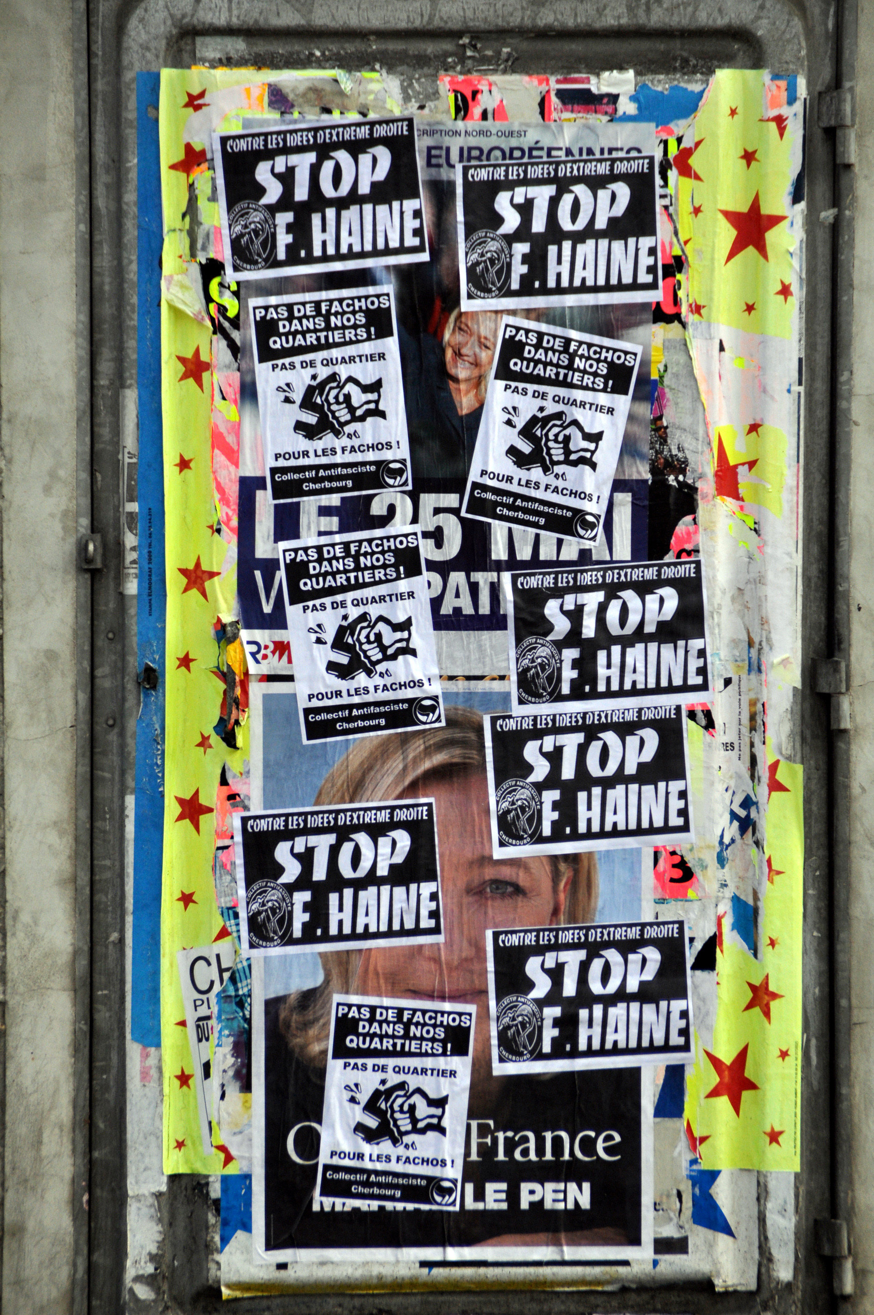 Télécharger la photo “Affiches du FN recouverte par des affiches antifa”
