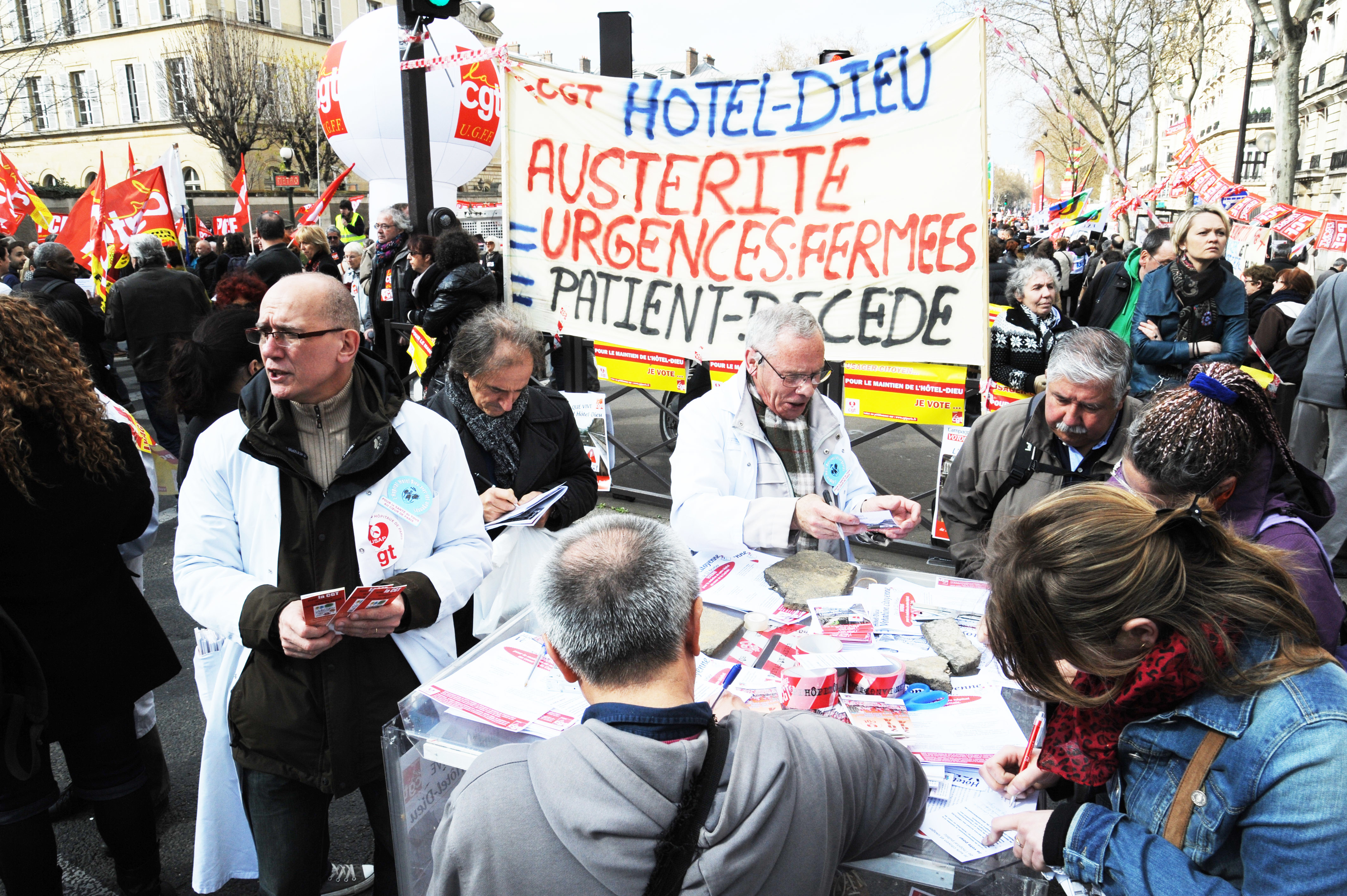 Télécharger la photo “Austérité urgences fermées patient décédé Hôtel Dieu signatures de pétitions”