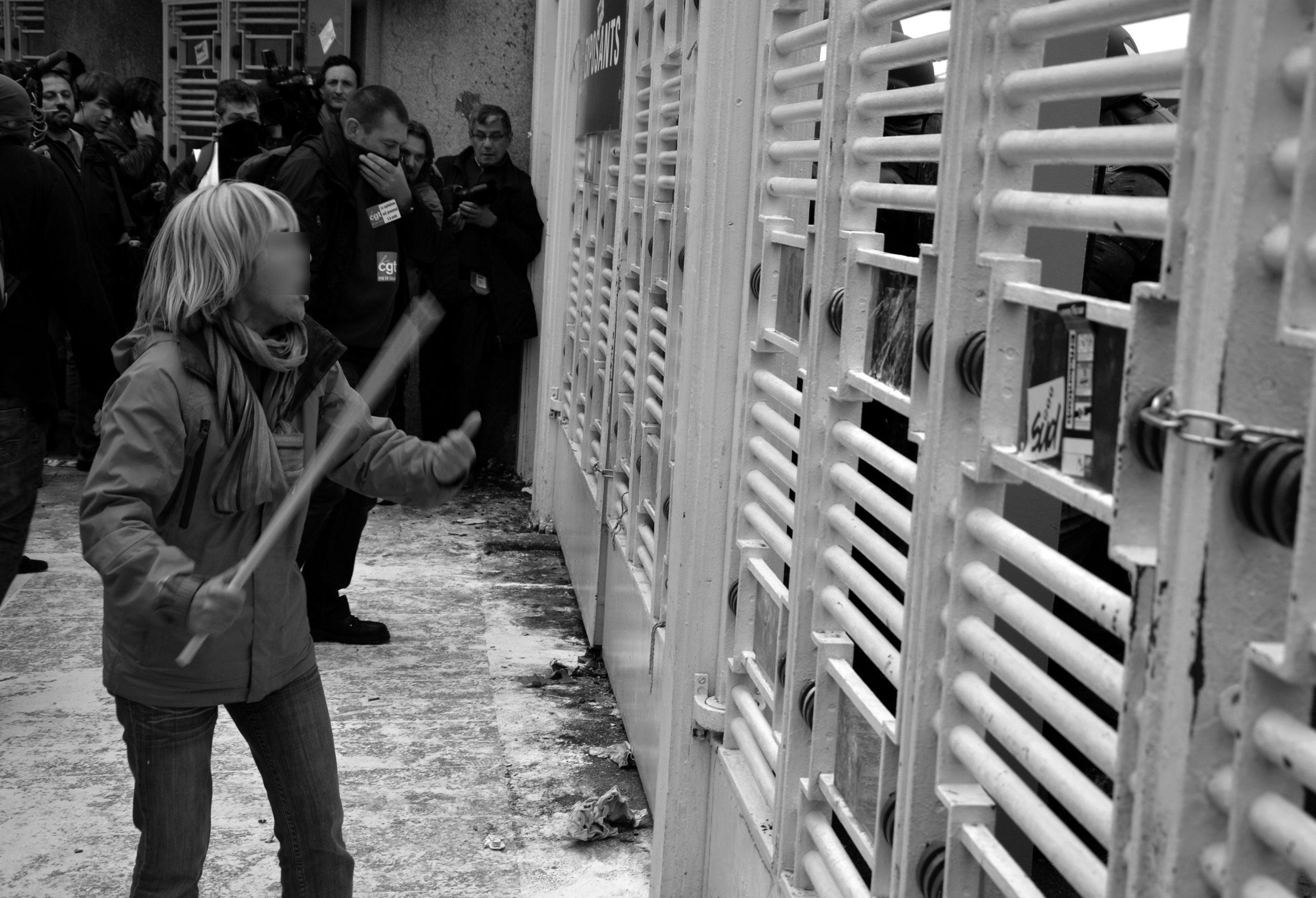 Télécharger la photo “Ouvrière seule face aux CRS”