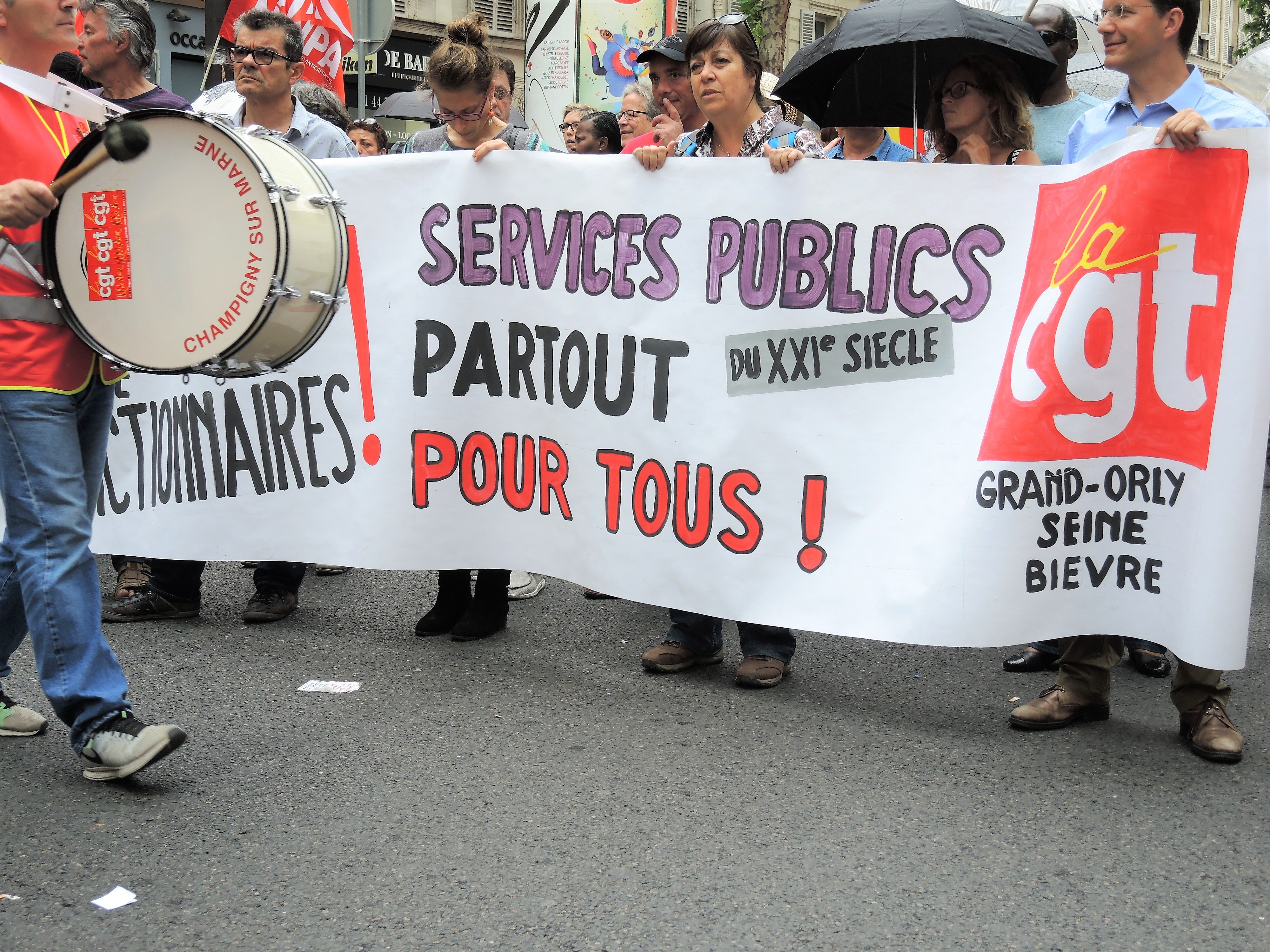 Télécharger la photo “Banderole Cgt Services Publics partout pour tous”