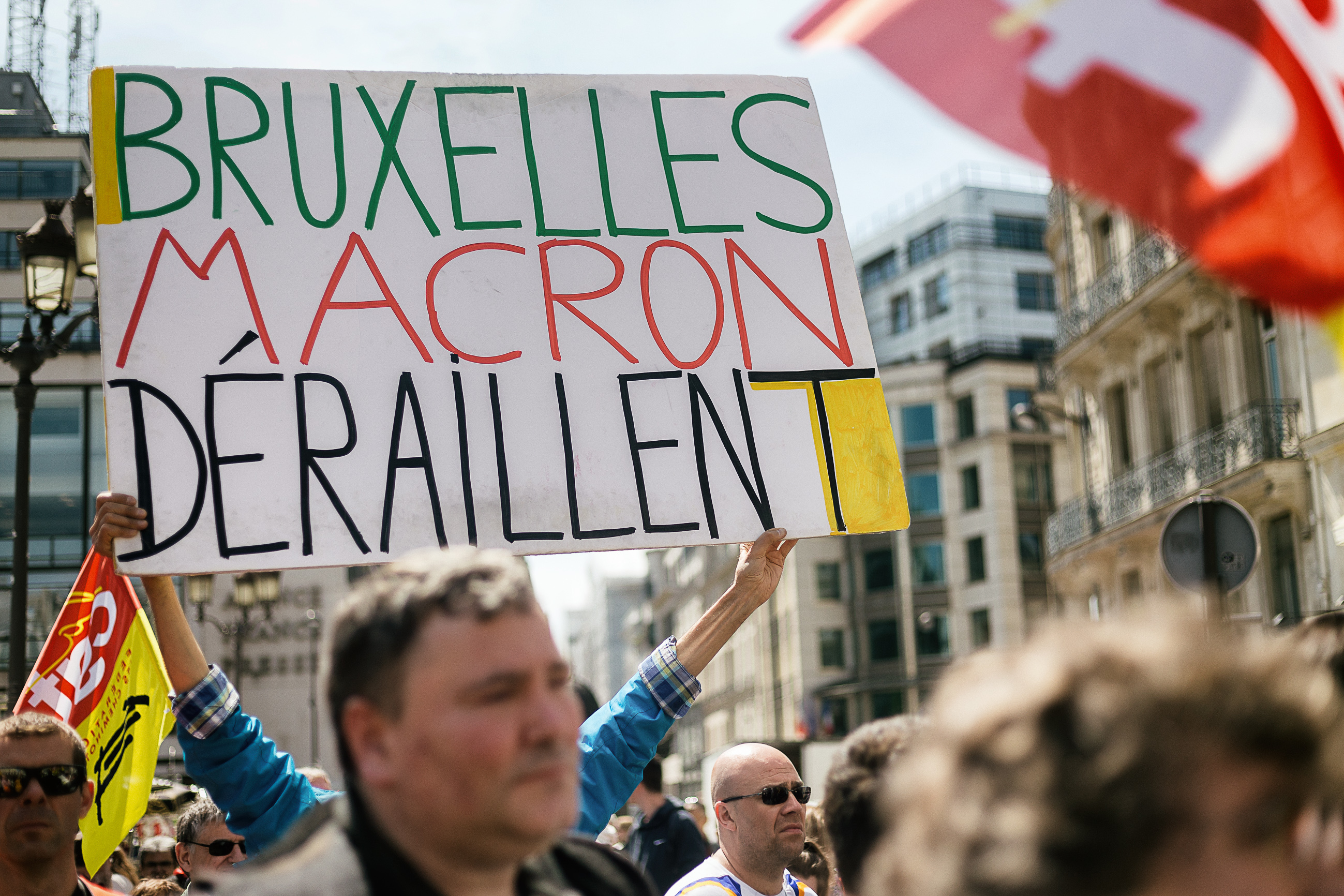 Télécharger la photo “Pancarte Bruxelles Macron déraillent ”