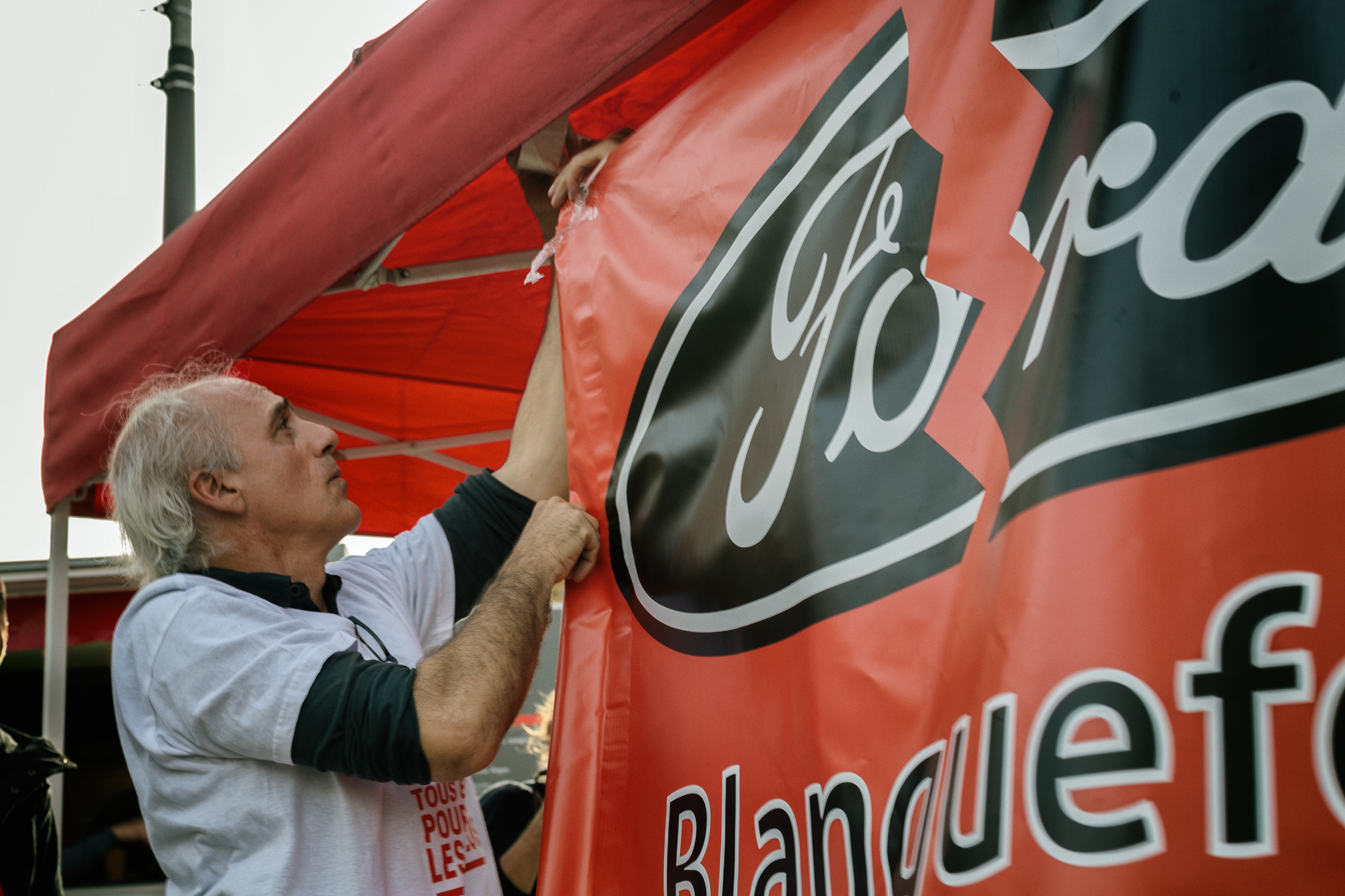 Télécharger la photo “Philippe Poutou installe la banderolle.”