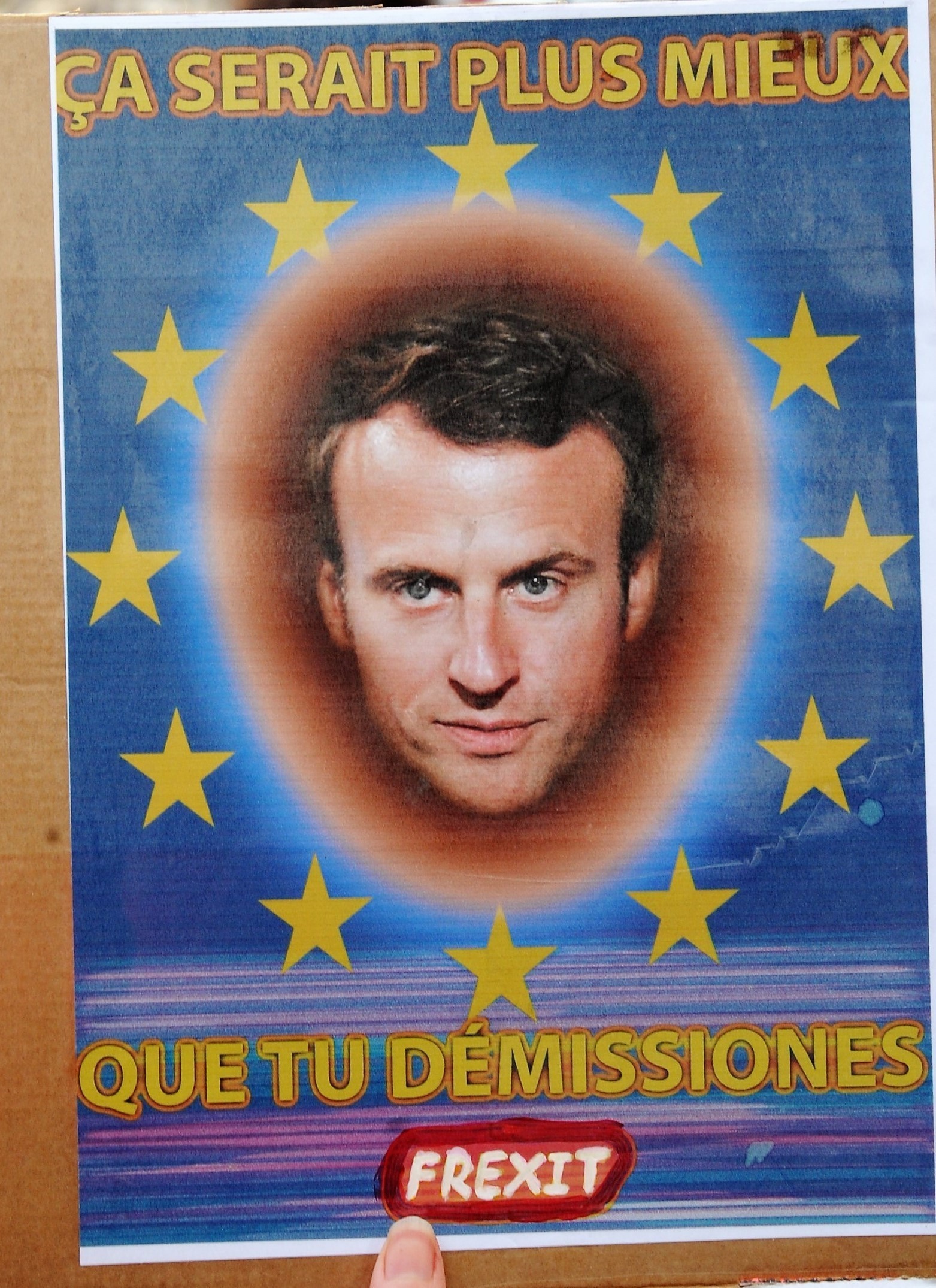 Télécharger la photo “Affichette retraités Macron ça serait mieux que tu démissionnes Frexit”