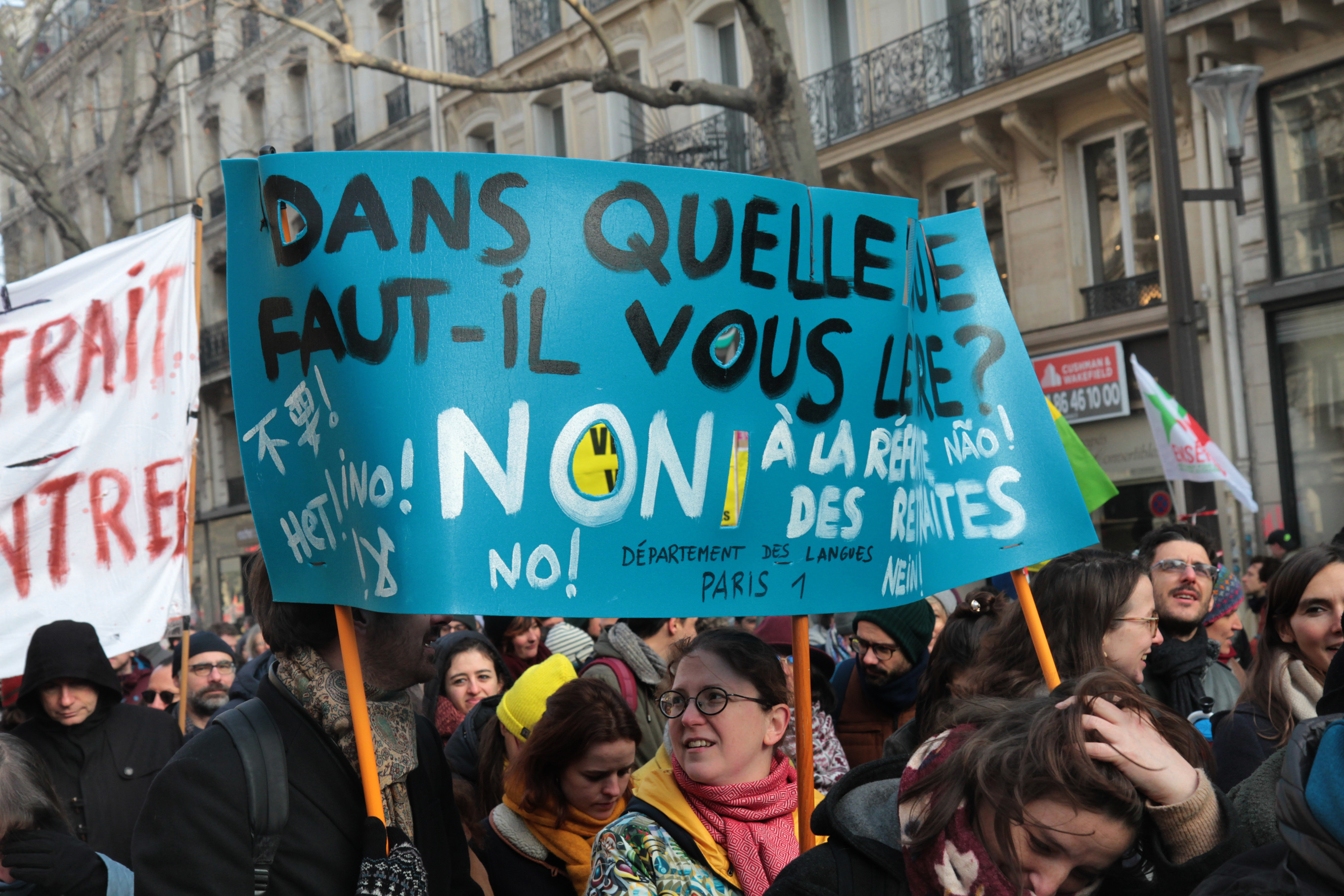 Télécharger la photo “banderole Dans quelle langue faut-il le dire ? Non !”