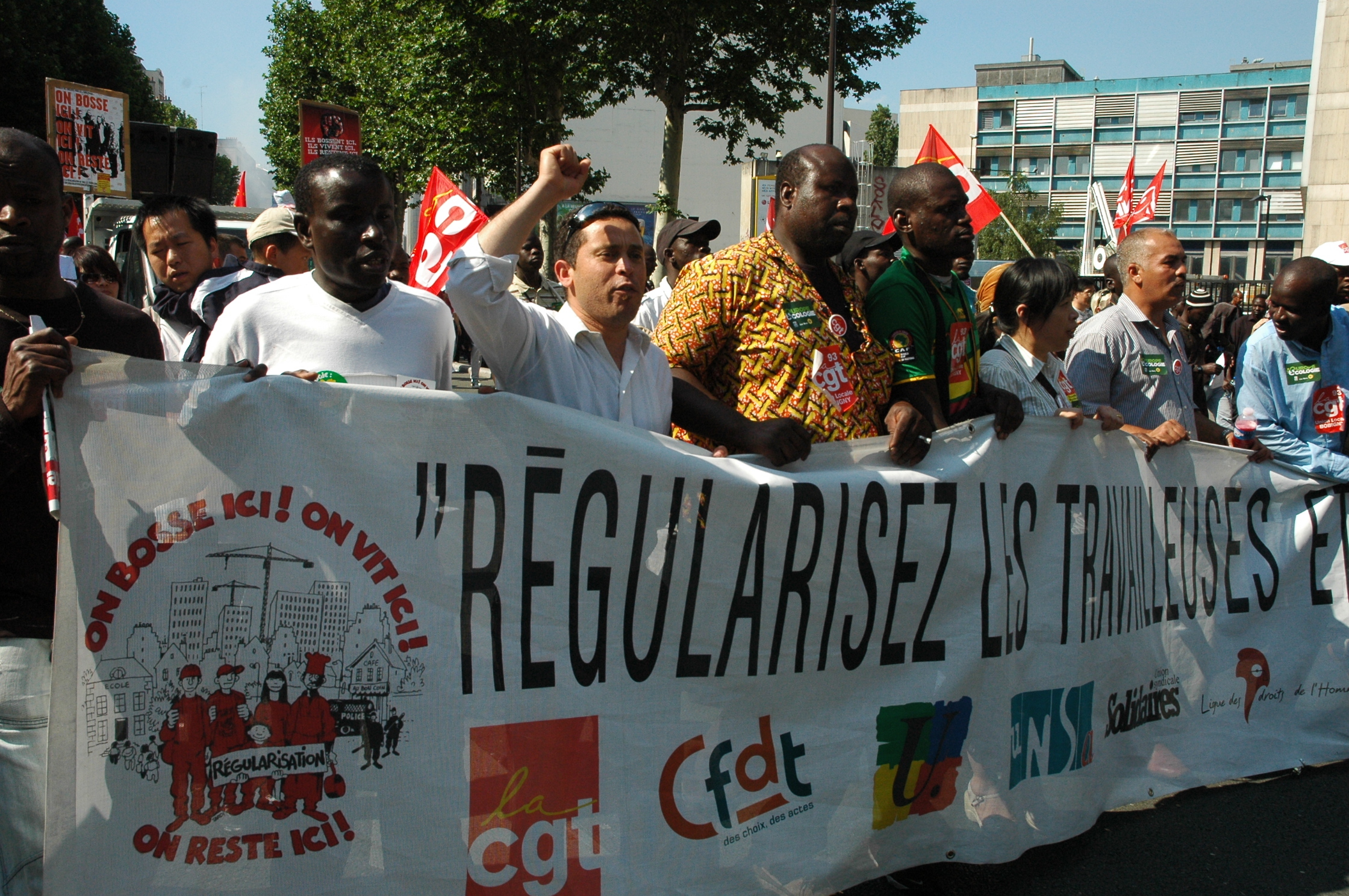 Télécharger la photo “banderole Intersyndicale,Régularisez les Travailleurs Sans-Papiers.”