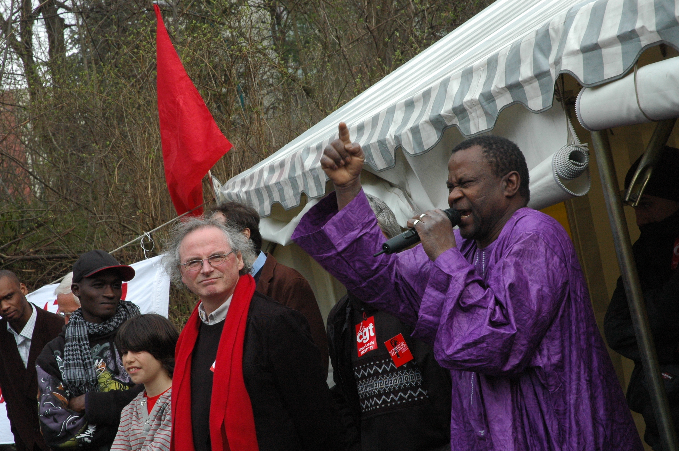 Télécharger la photo “Un Cégétiste musicien exprime sa solidarité avec le piquet de grève des sans-papiers de Massy et environs.”