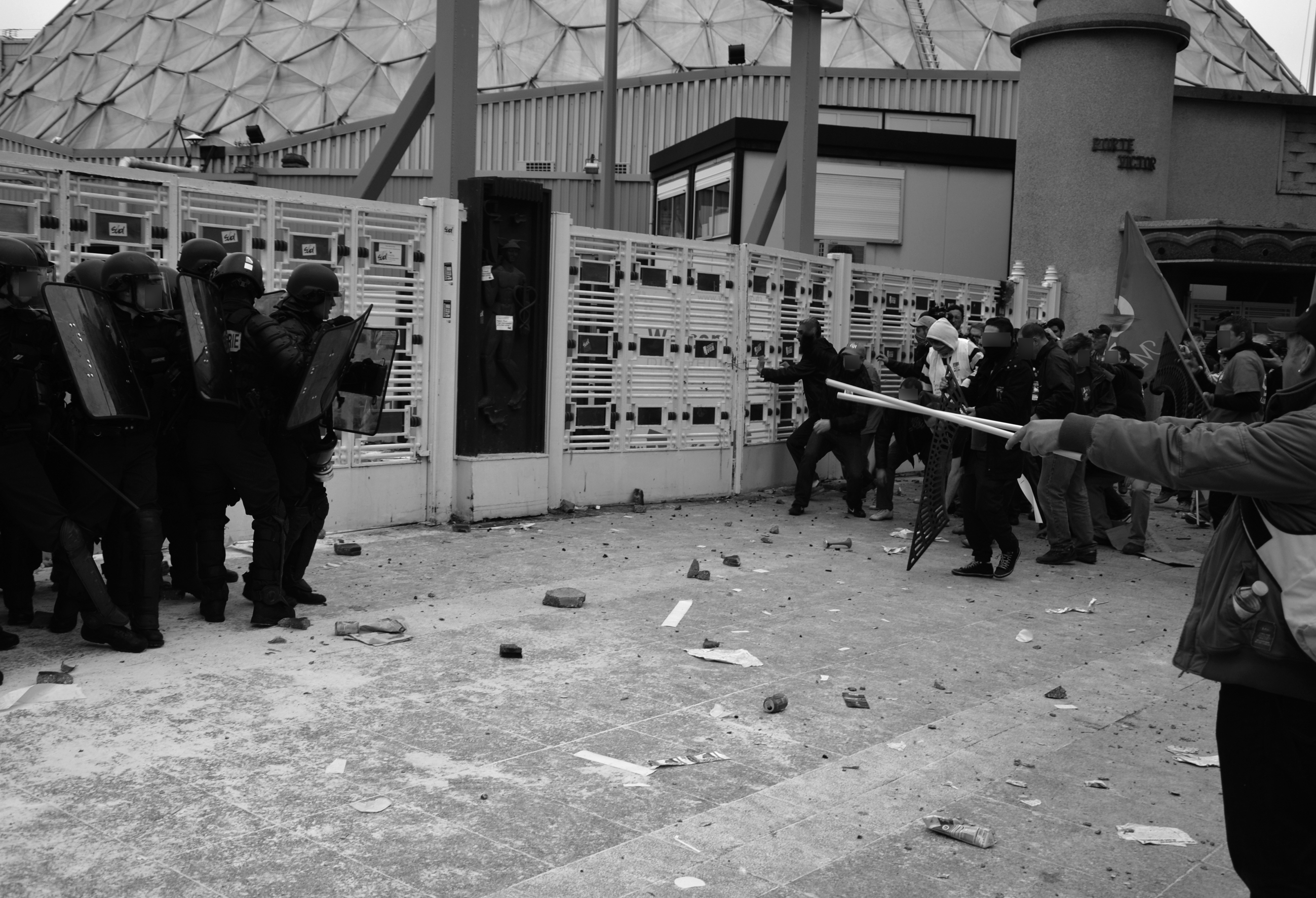 Télécharger la photo “les ouvriers de l'automobile en colère face aux CRS. Face à face.”