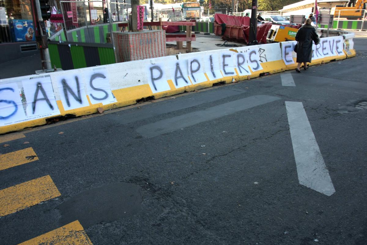 Porte des Lilas. Chantier RATP. 26 octobre 2009. Les salariés sans-papiers en grève occupent jour et nuit une partie du chantier.
