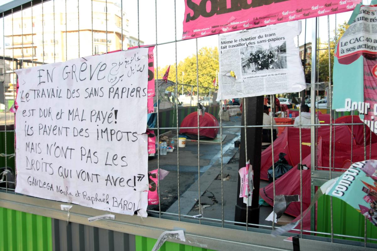 Porte des Lilas. Chantier RATP. 26 octobre 2009. Les salariés sans-papiers en grève occupent jour et nuit une partie du chantier.