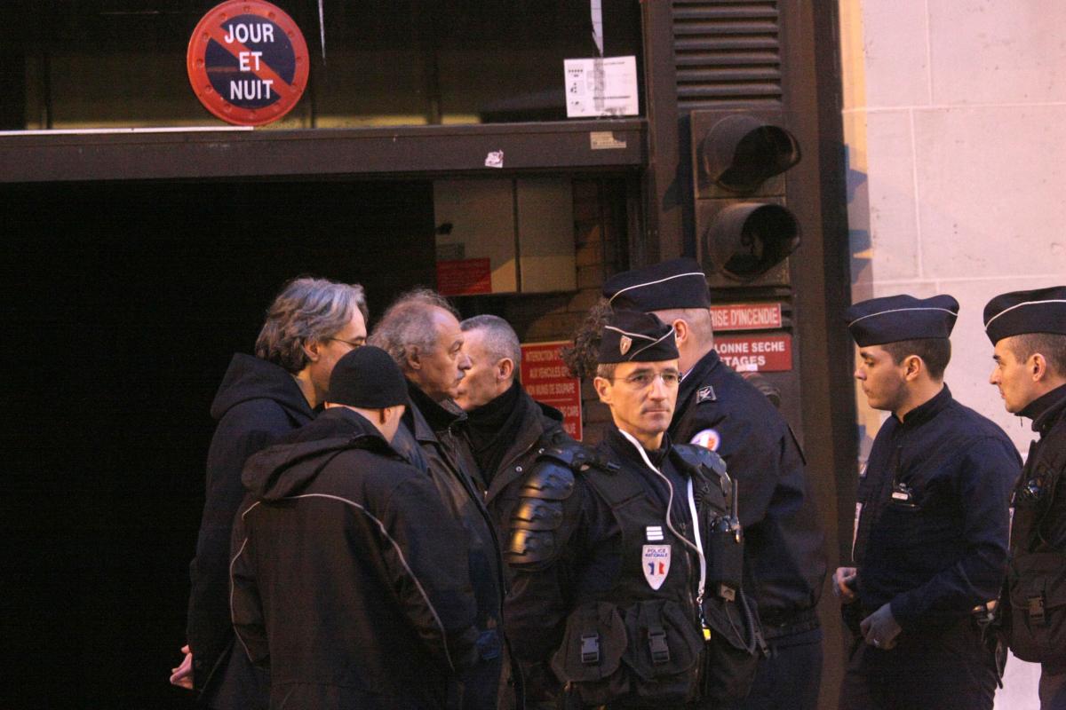 Yves Contassot négocie l'entrée et la sortie de l'immeuble suite au blocus effectué par la police.
