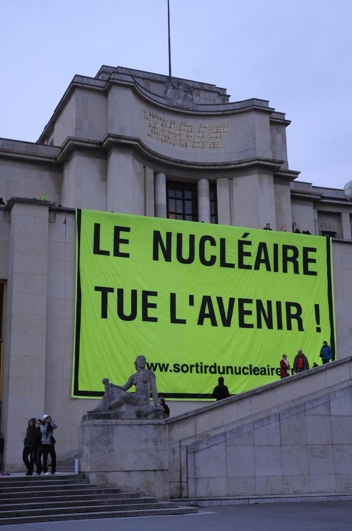 Banderole énorme Le Nucléaire Tue l'Avenir place du Trocadéro