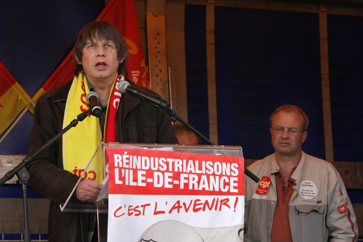 Le 22 mars 2012 rassemblement à l'appel de la CGT Ile de France devant l'usine Peugeot Citroën Aulnay, avec la présence de Bernard Thibault, contre la menace de fermeture de l'usine.