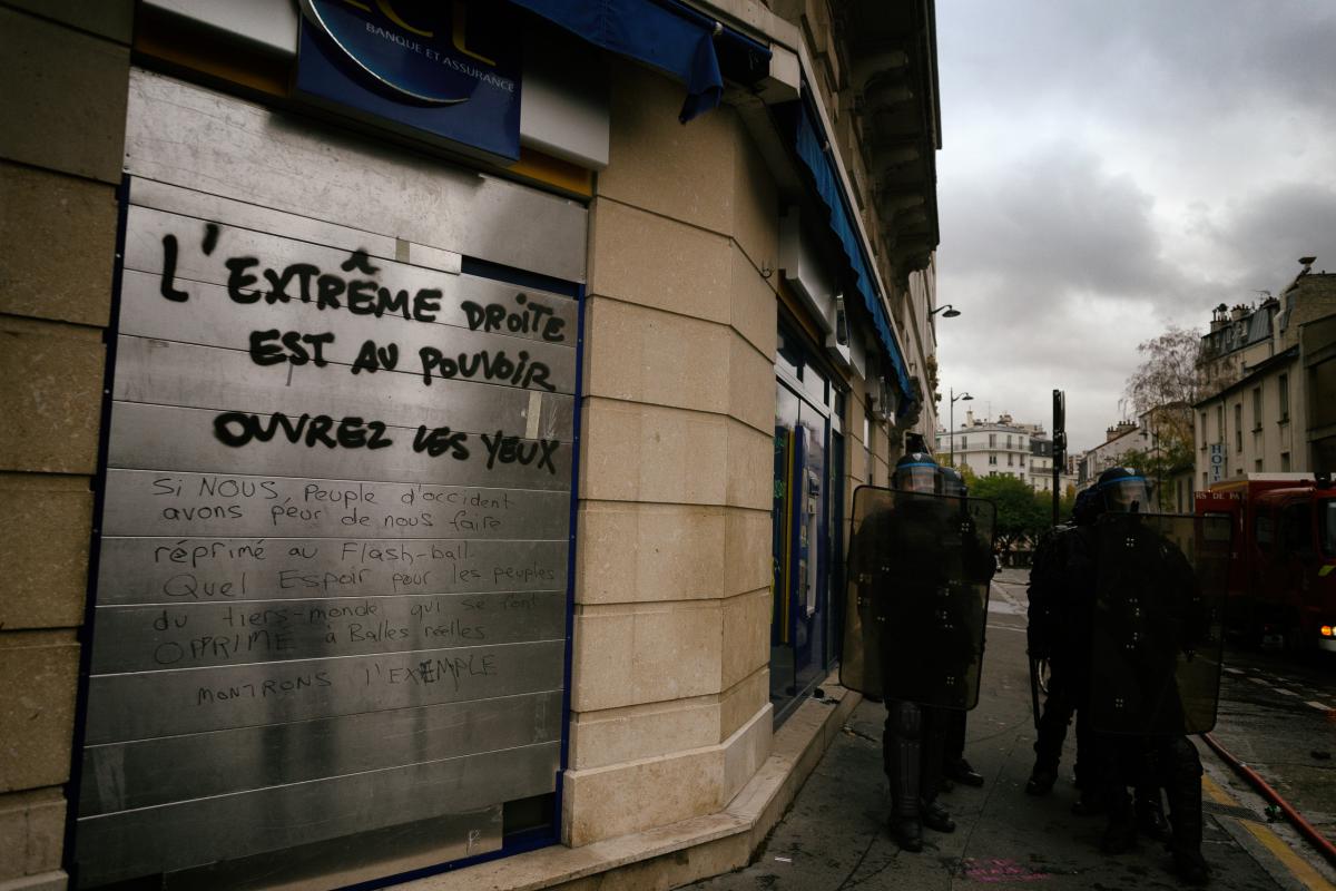 Un tag dans le store d'une banque, Paris, 16 novembre 2019.