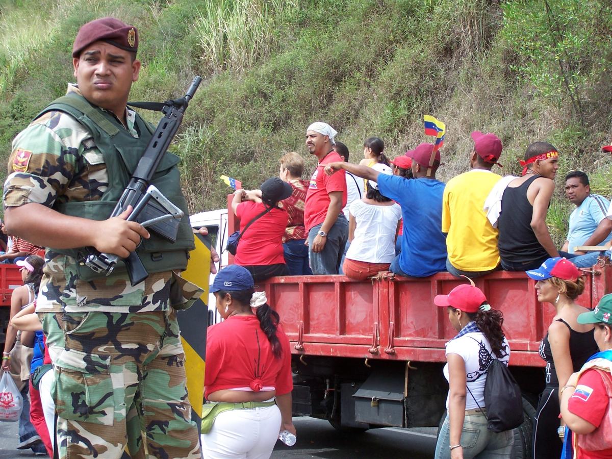 Militaire lors de la manifestation en soutien à Chavez