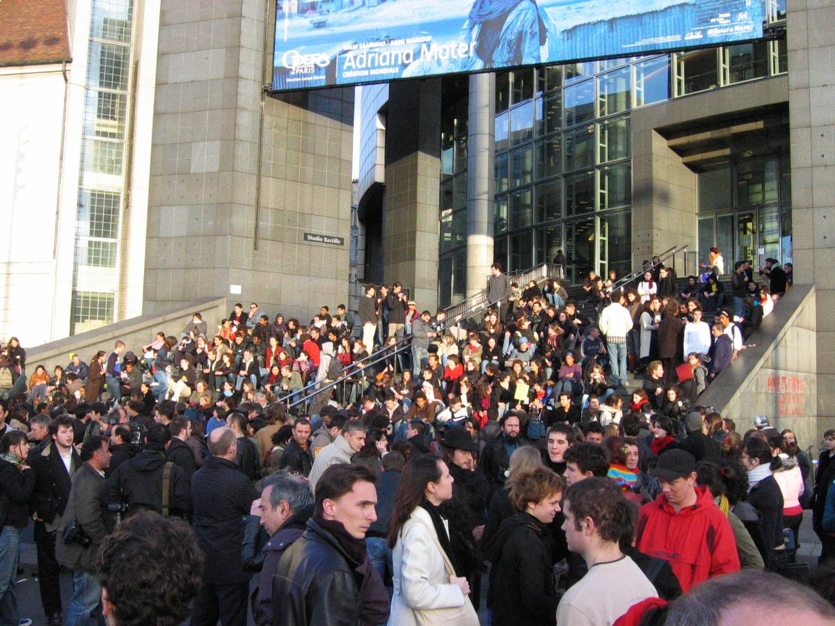 Mouvement contre le CPE. Rassemblement Place de la Bastille à Paris le jour de l'annonce de Chirac du premier recul du gouvernement. Suite à la colère qu'il ne cède pas, le rassemblement s'est ensuite transformé en manifestation spontanée jusqu'à plus d'une heure du matin. Paris/2006/03/31/CM.