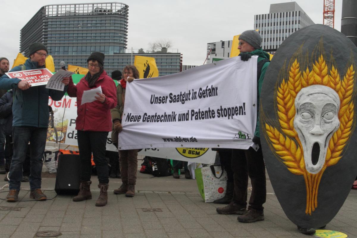 Rassemblement paysan à l'appel notamment de la Confédération paysanne pour dénoncer l’utilisation d'OGM dans l'agriculture. Faire pression sur le vote des députéEs en cours pour interdire l'emploi des OGM. Prises de paroles des représentantEs des organisations et des députéEs solidaires des paysanEs.