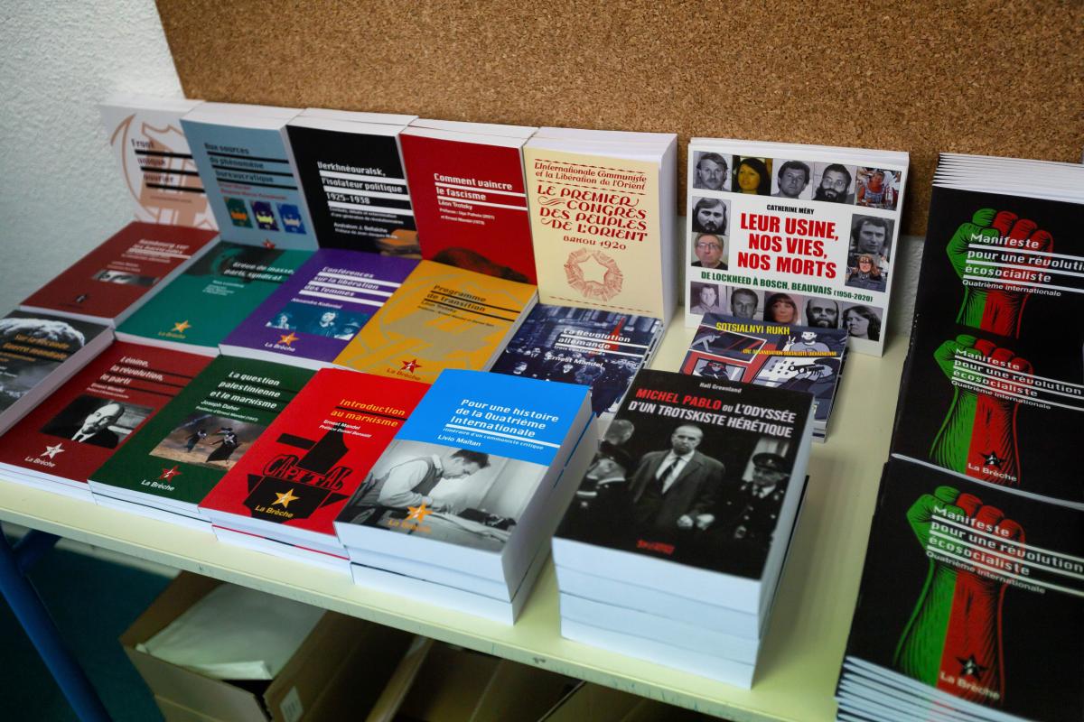 France, Port Leucate, 2025-08-24. Librairie La Breche. Universite d ete du NPA. Photographie de Martin Noda / Hans Lucas