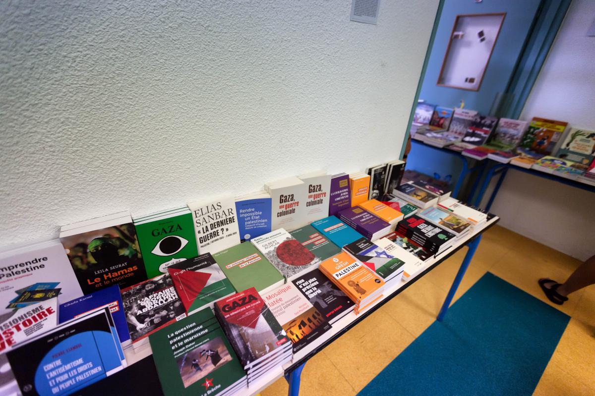 France, Port Leucate, 2025-08-24. Librairie La Breche. Universite d ete du NPA. Photographie de Martin Noda / Hans Lucas