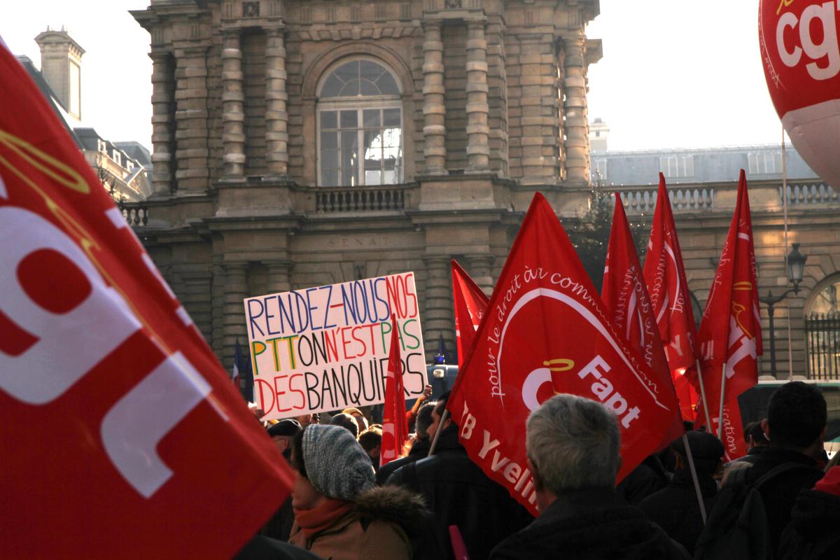 Paris, le 8 décembre 2016, rassemblement devant le Sénat des postiers en grève,