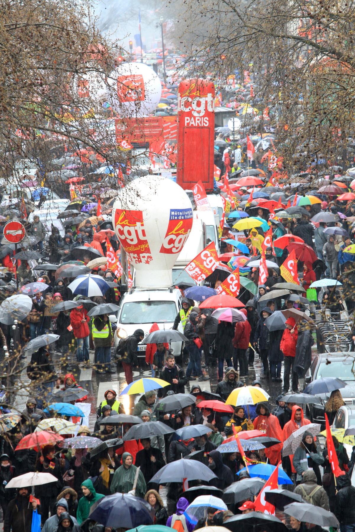 Paris le 31 mars 2016, manifestation contre la loi travail, de la place d'Italie à la Nation, sous une pluie battante.
