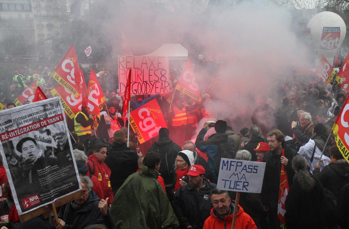 Paris, 4 février 2016, place de la Nation, rassemblement de soutien aux Goodyear condamné à de la prison ferme pour avoir séquestré deux cadres de l'entreprise.