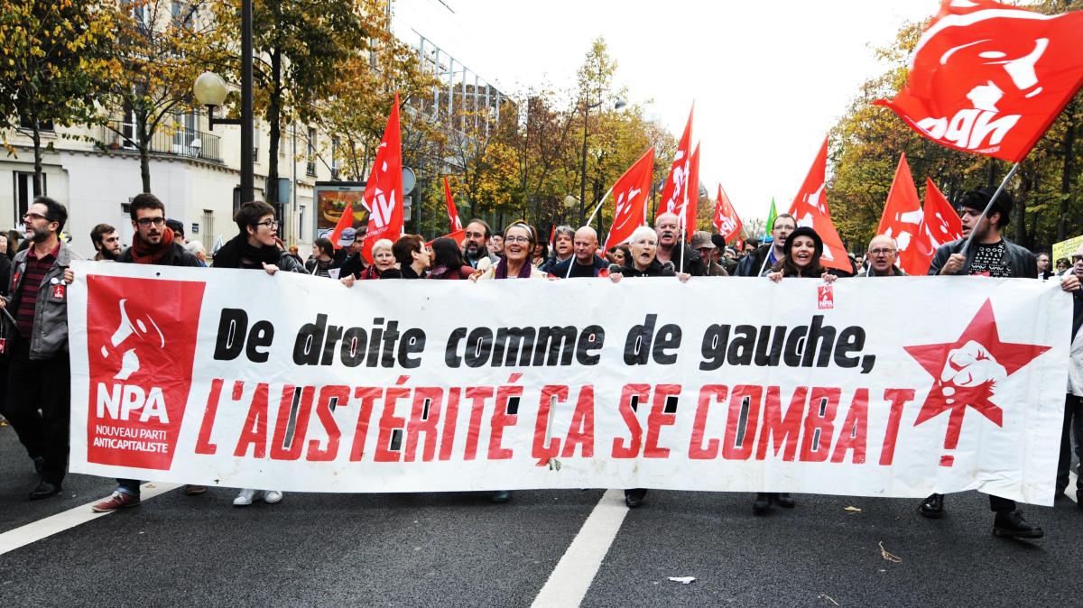 Banderole Npa de droite comme de gauche l'Austérité ça se combat