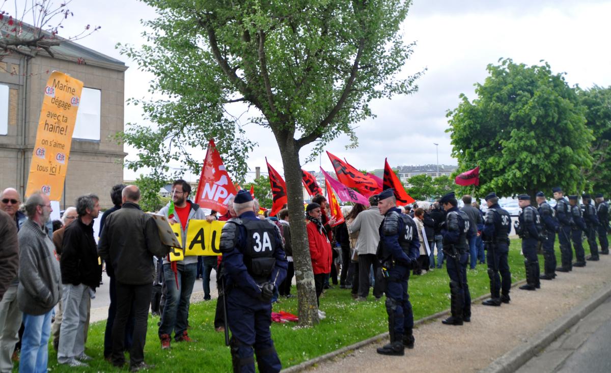 Cherbourg le 07 avril 2014. Manifestation contre la venue de Marine Le Pen.