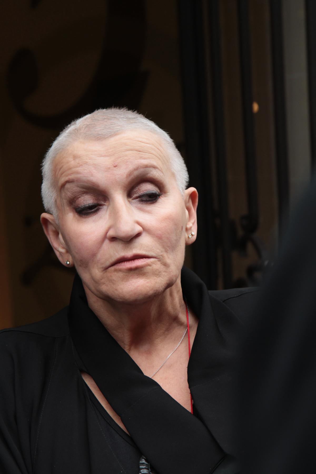 Christiane Leveuf, victime du sang contaminé, en lutte pour le respect des accords de dédommagement passés avec AXA, campe dans sa voiture devant le siège de l'établissement français du sang (EFS).