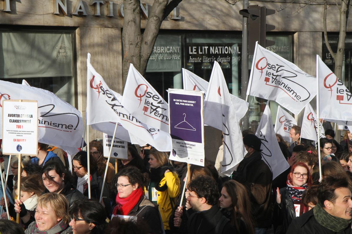 Manifestation à Paris le 1 février 2014 contre la remise en cause du droit à l'avortement en Espagne, la diminution de nombre de centres d'IVG en France