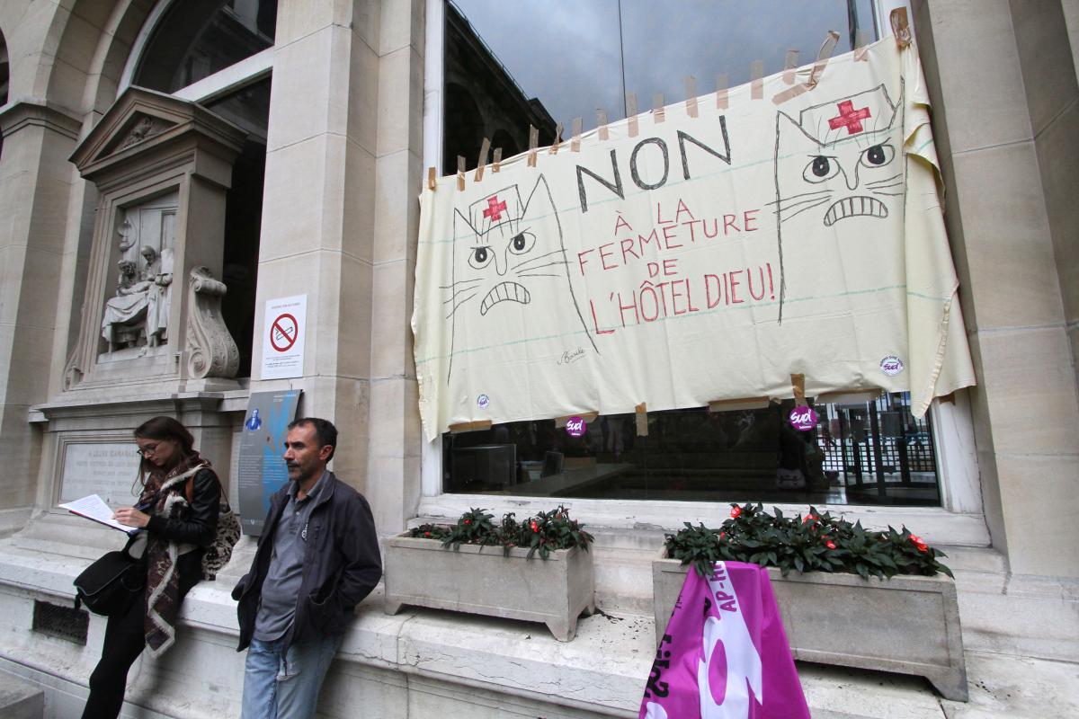 Rassemblement de soutien à l'occupation de l'Hôtel Dieu menacé de fermeture, à Paris le 12 septembre 2013.