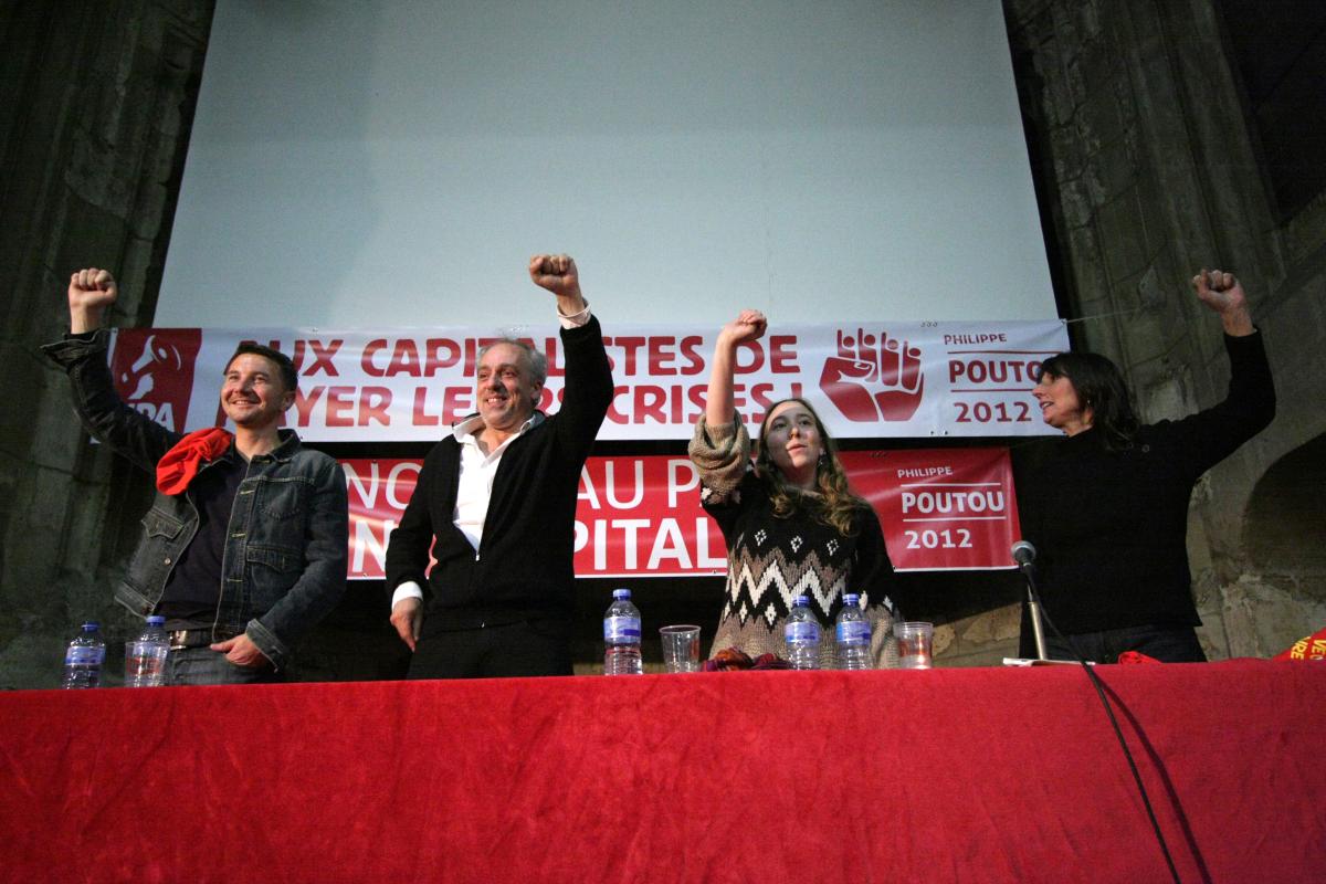 Dernier meeting de la campagne présidentielle pour Philippe Poutou, Olivier Besancenot et Christine Poupin, à Rouen le 19 avril 2012.