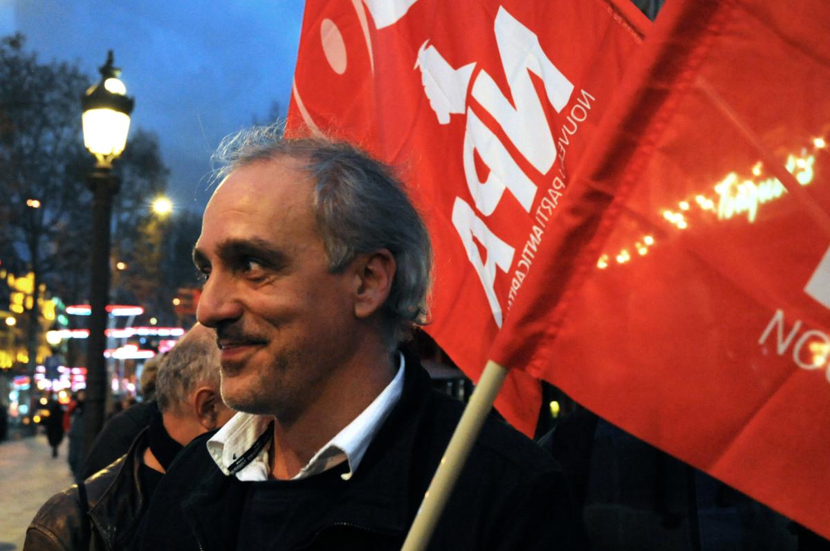 Philippe Poutou et drapeau Npa