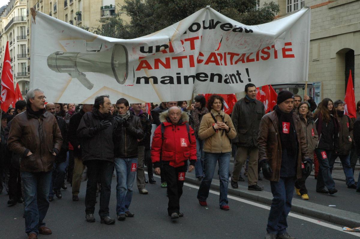 banderole du Npa à la manifestation de soutien au peuple Tunisien