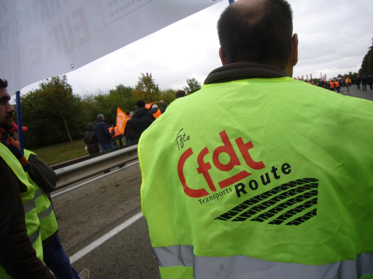 Cfdt route. Routiers dans la manifestation contre la réforme des retraites. le 19 octobre 2010. Chartres (28)
