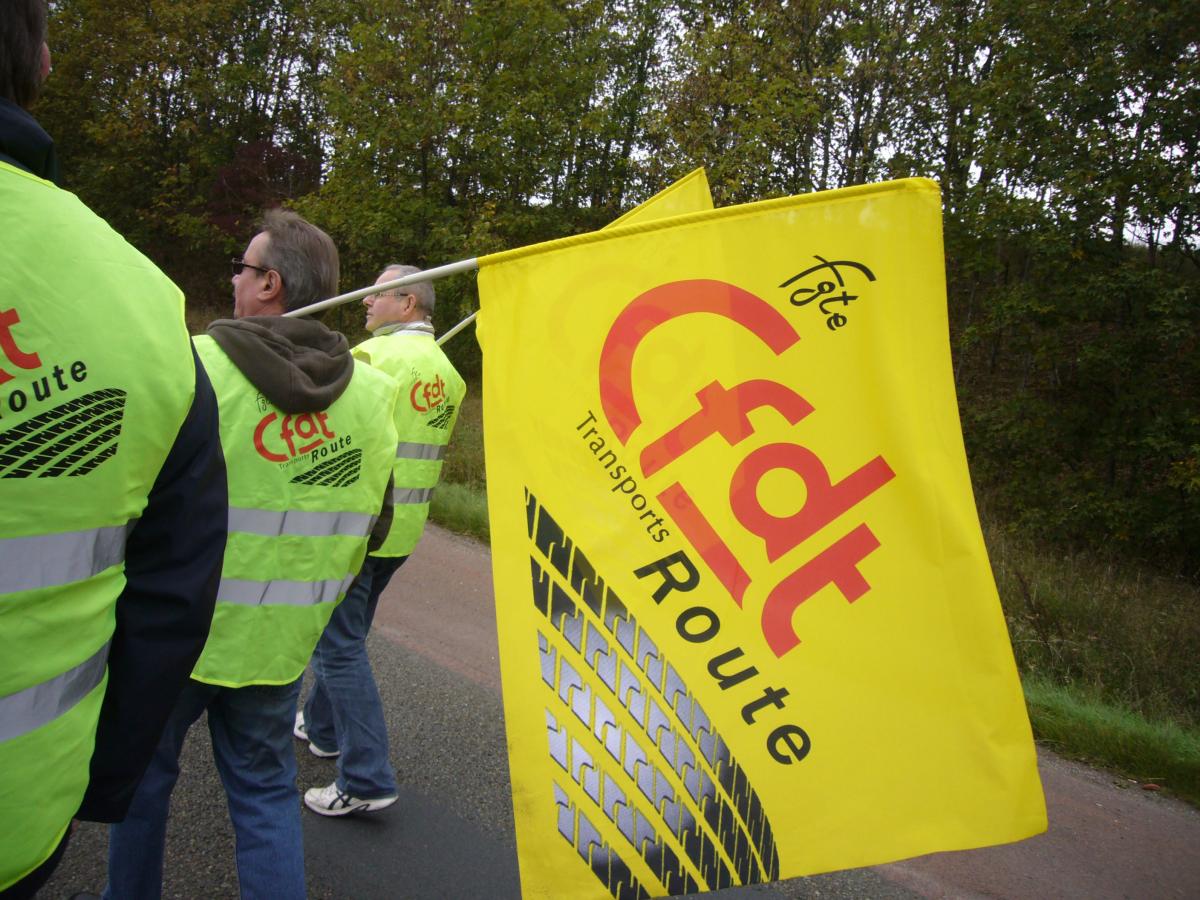 Cfdt route. Routiers dans la manifestation contre la réforme des retraites. le 19 octobre 2010. Chartres (28)