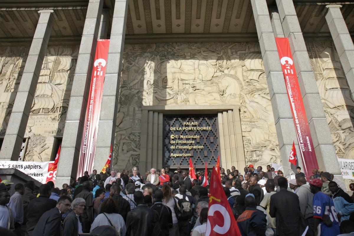 Depuis le jeudi 7 octobre 2010 les sans-papiers occupent la cité nationale de l'immigration, dans le Palais de la Porte Dorée à Paris, pour exiger le respect des engagements pris par le gouvernement concernant leur régularisation.