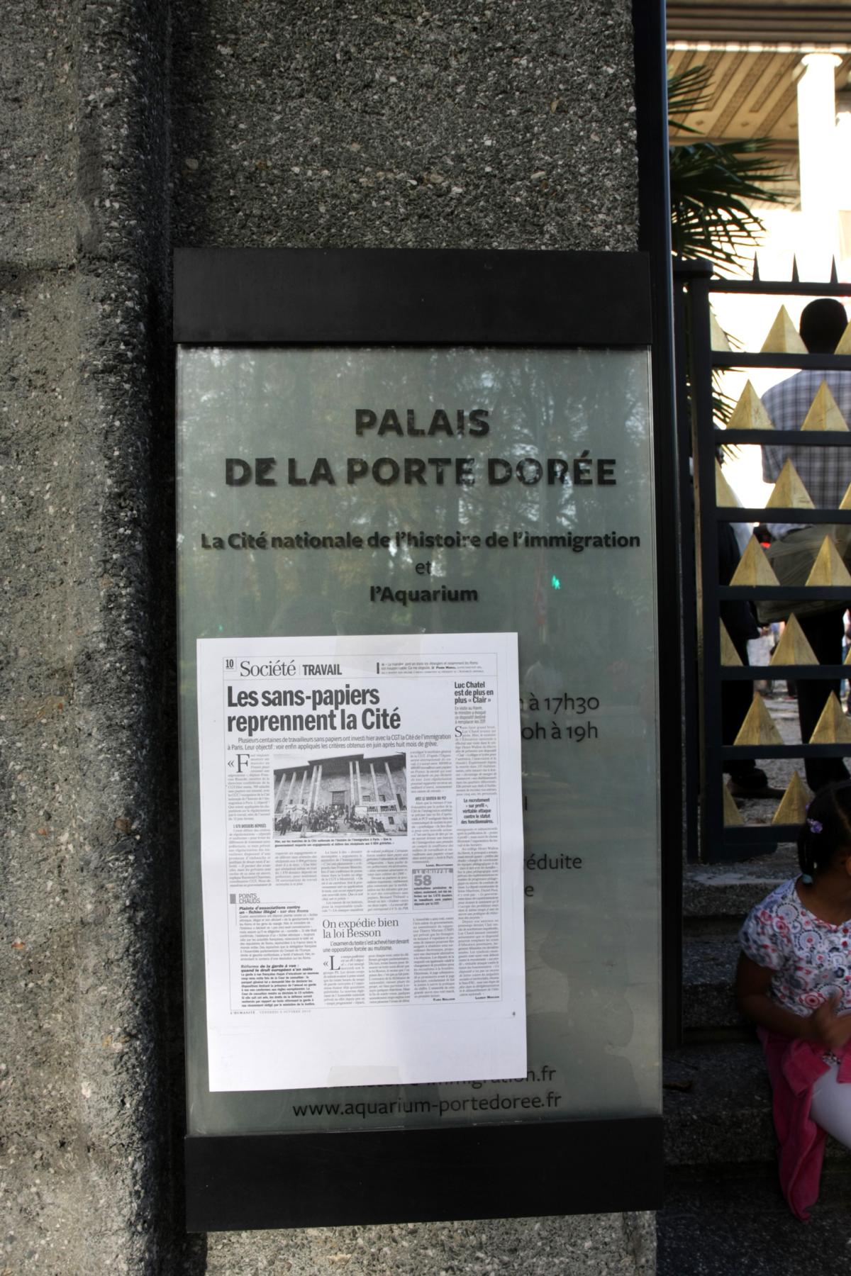 Depuis le jeudi 7 octobre 2010 les sans-papiers occupent la cité nationale de l'immigration, dans le Palais de la Porte Dorée à Paris, pour exiger le respect des engagements pris par le gouvernement concernant leur régularisation.