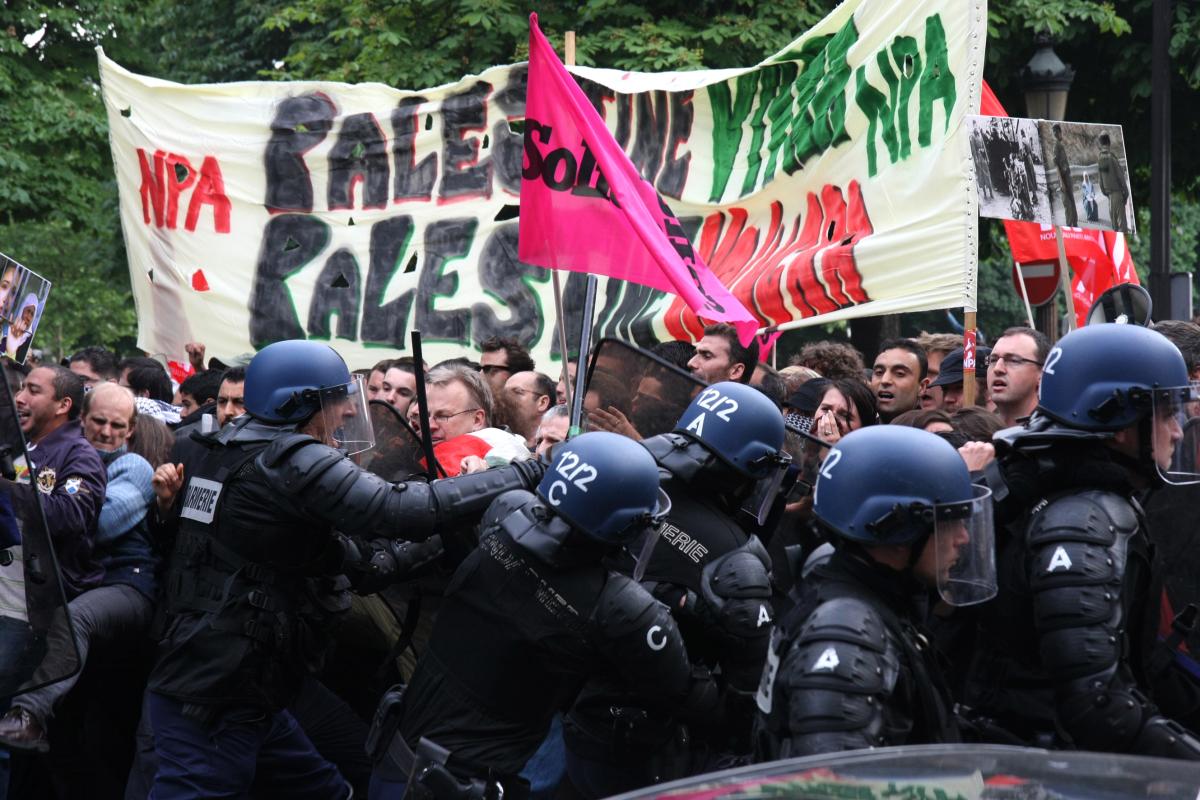 31 mai 2010 rassemblement sur les Champs Elysées prés de l'ambassade d'Israël pour protester contre le massacre qui a eu lieu parmi les militants de la flotille humanitaire