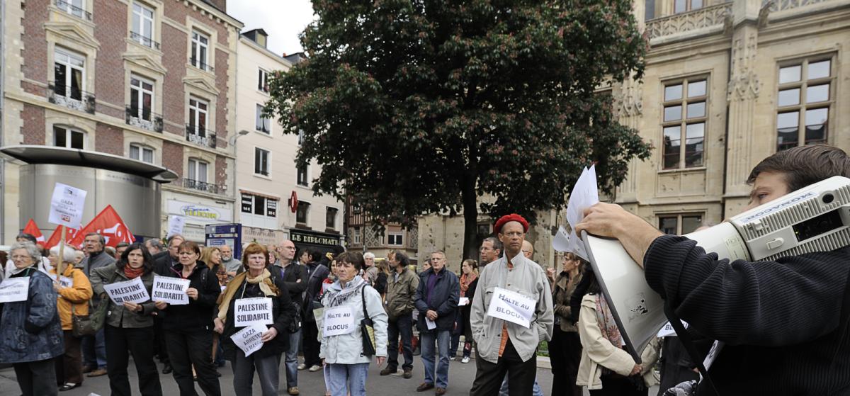 31 mai 2010 rassemblement à Rouen protestation Gaza. Prise de parole devant le palais de justice.