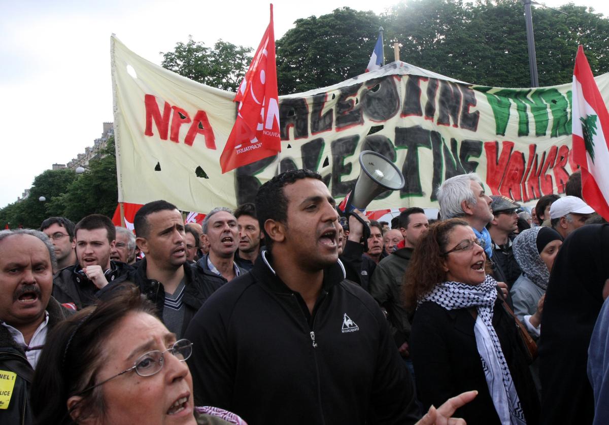 31 mai 2010 rassemblement sur les Champs Elysées prés de l'ambassade d'Israël pour protester contre le massacre qui a eu lieu parmi les militants de la flotille humanitaire