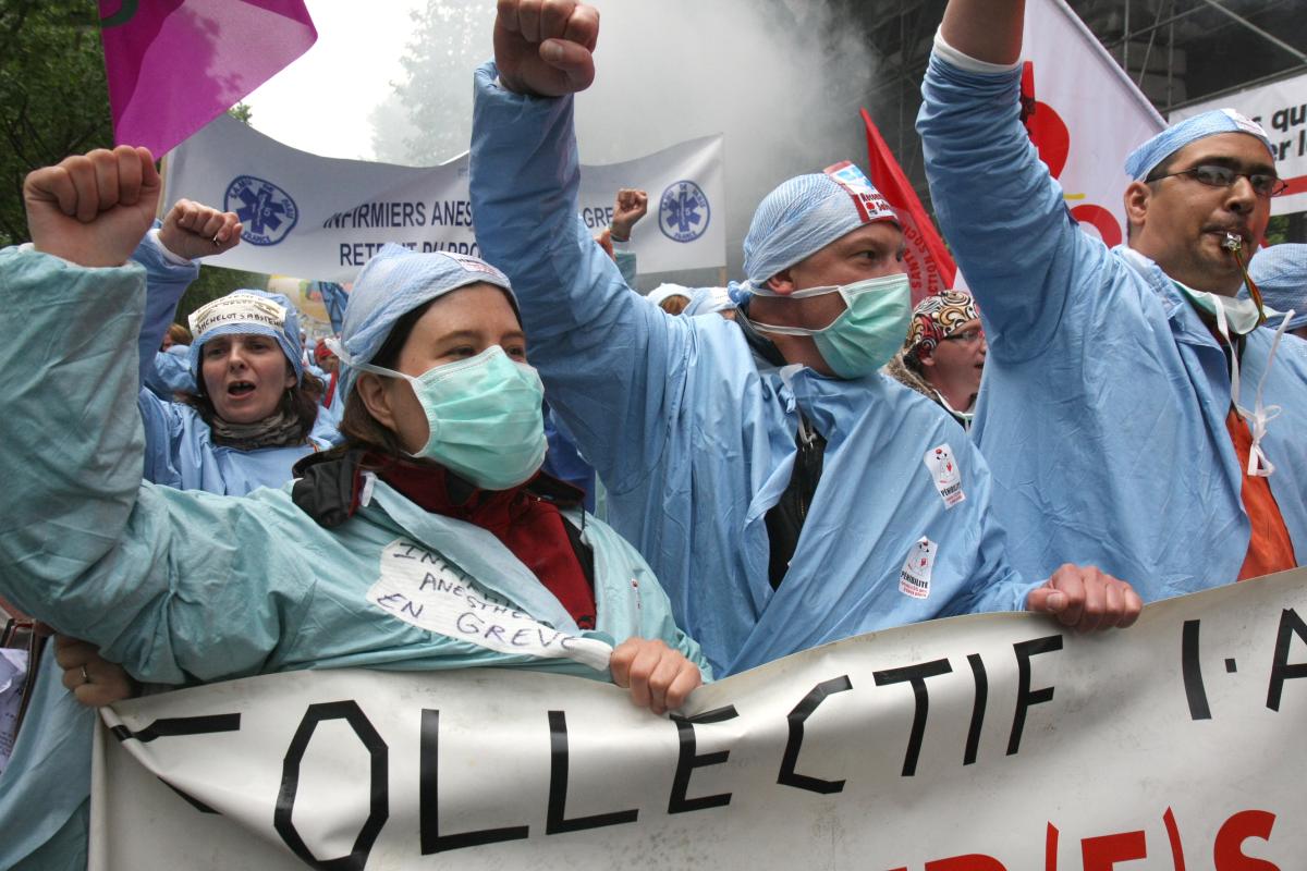 27 mai 2010 journée de grève et de manifestations pour la défense des retraires. Ici à Paris sous la pluie de la place Denfert-Rochereau à la place de la Bastille.