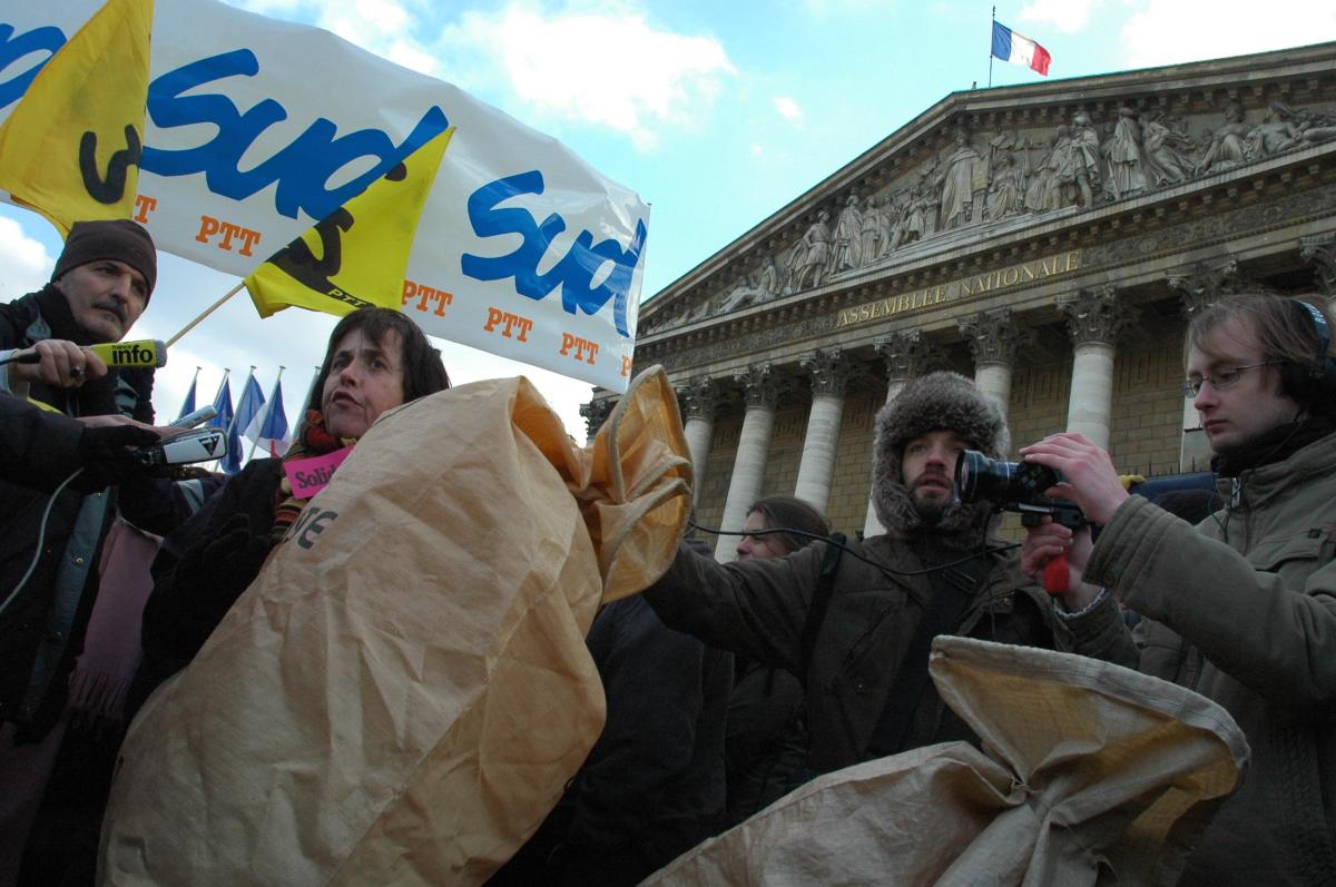 Action devant l'assemblée nationale contre la privatisation de la Poste 15 décembre 2009 syndicalistes de Sud