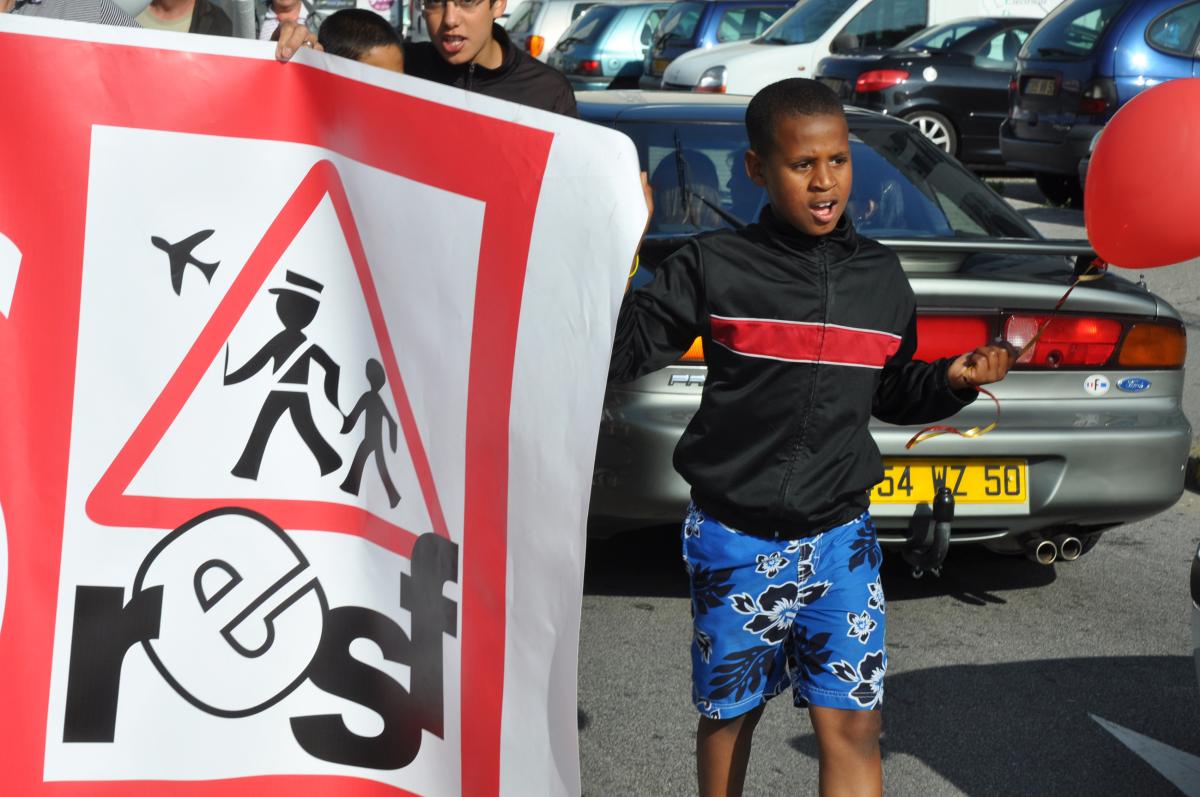 Enfant tenant la banderole RESF