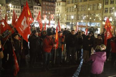 France, Strasbourg, 17-01-2026:les manifestantEs se rassemblent pour une dernière prise de parole