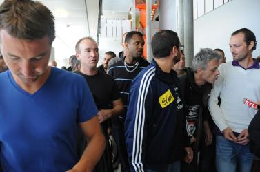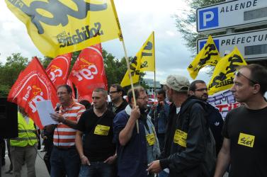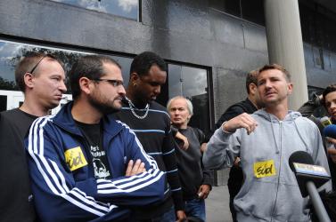 sortie des syndicalistes postiers condamnés au tribunal de Nanterre