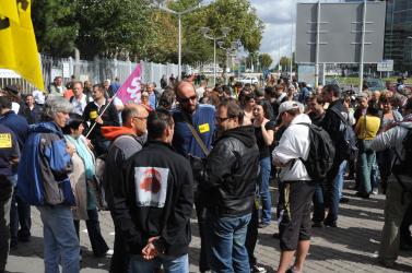 Monseigneur Jacques Gaillot en soutien des postiers condamnés au tribunal de Nanterre