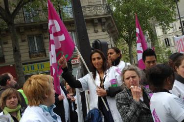 Infirmière de l'UNSA avec ses enfants.