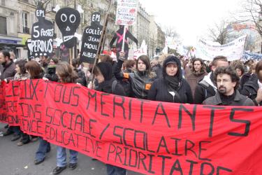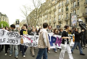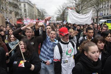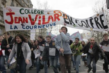 Tête de cortège de la manif des lycéens et des profs à Paris le 1er avril 2008
