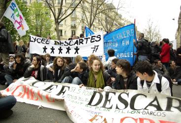 bref sitting des lycéens pendant la manif du 1er avril 2008 à Paris