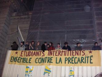 Banderole Interimaires sans-papiers REGULARISATION au Panthéon Paris